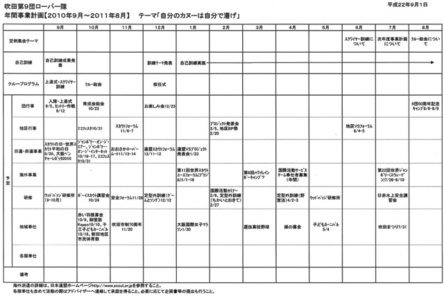 2010年9月~2011年8月のローバー隊の年間事業計画です。