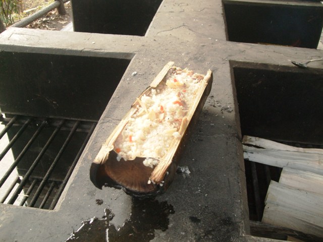 火だけ起こせばそれでいいのかと思いましたが、竹筒ご飯の出来上がりまで…。
