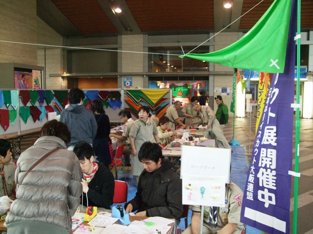 この写真はクラフトコーナーです。反対側に写真コンテストと立ちかまど模型、海外のボーイスカウトの制服を着て写真撮影などいろいろありましたが、毎年よくなっているような気がします。